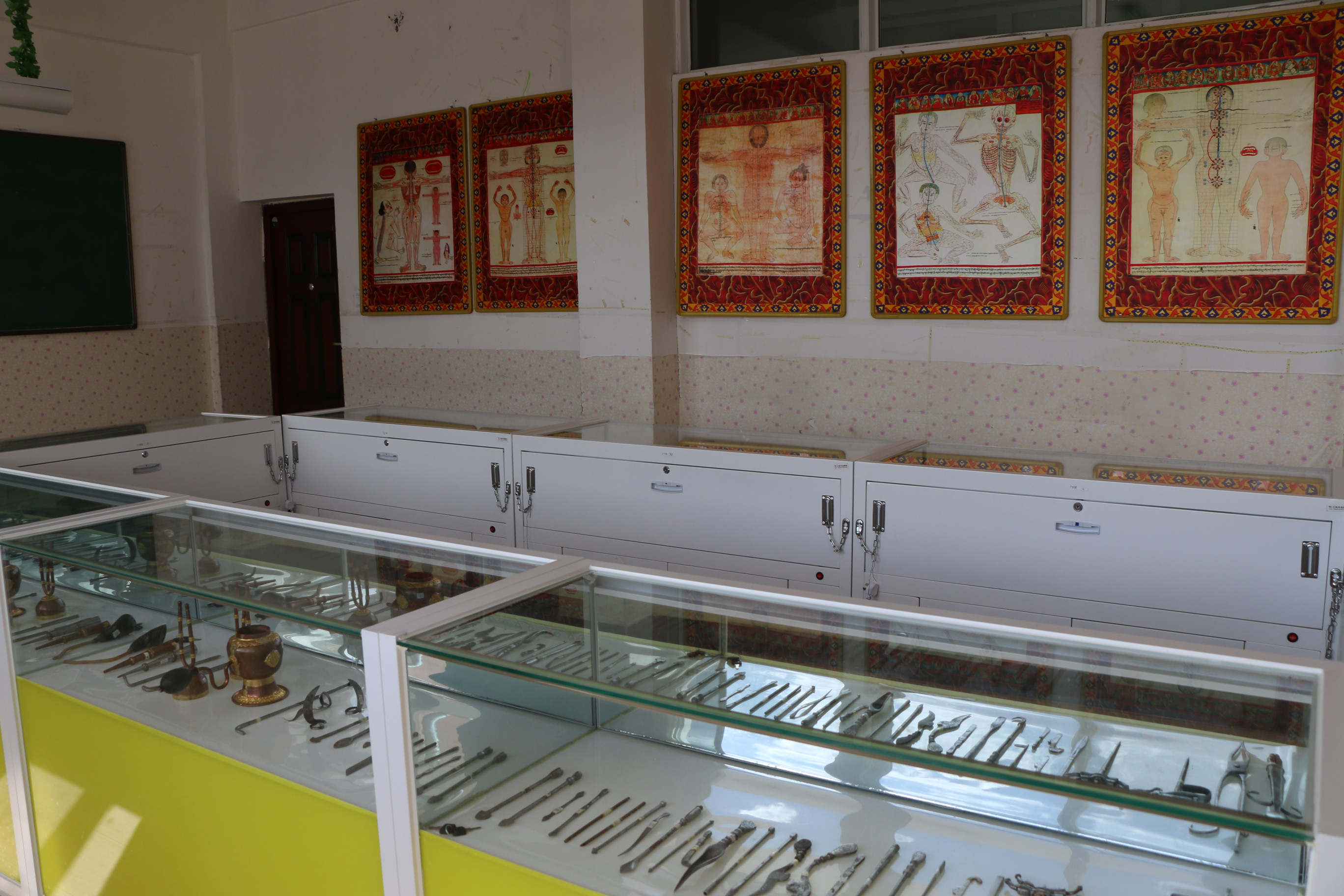 藏医示教室:可开设藏医三大基因学、藏医内科学、藏医热病学、藏医疫病学、藏医五官科学、藏医杂病学、藏医外科学、藏医儿科学、藏医妇科学、藏医外伤学、藏医解毒学、藏医泻治学、藏医诊断学、藏医放学疗法、藏医外治学等学科的实验、实训教学工作。