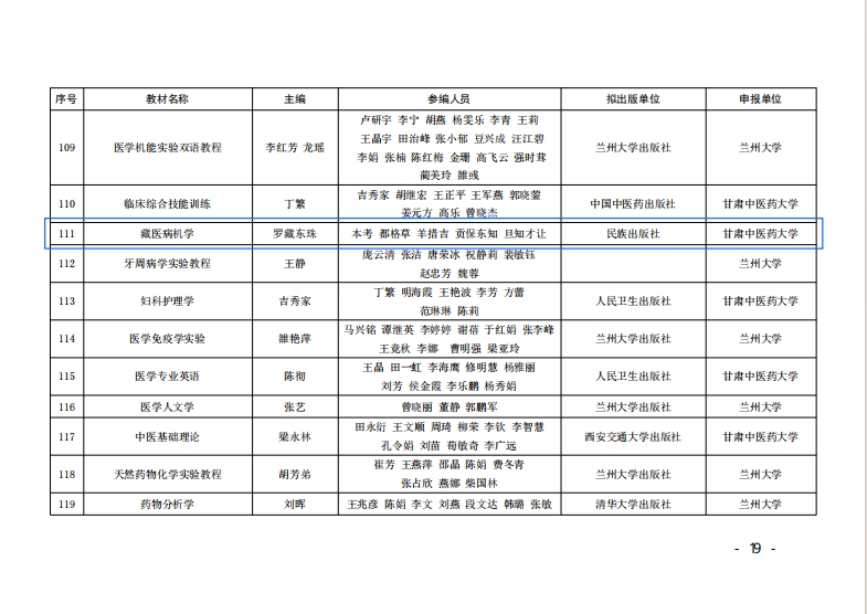公司申报的“十四五”省级规划教材《藏医病机学》成功获批立项