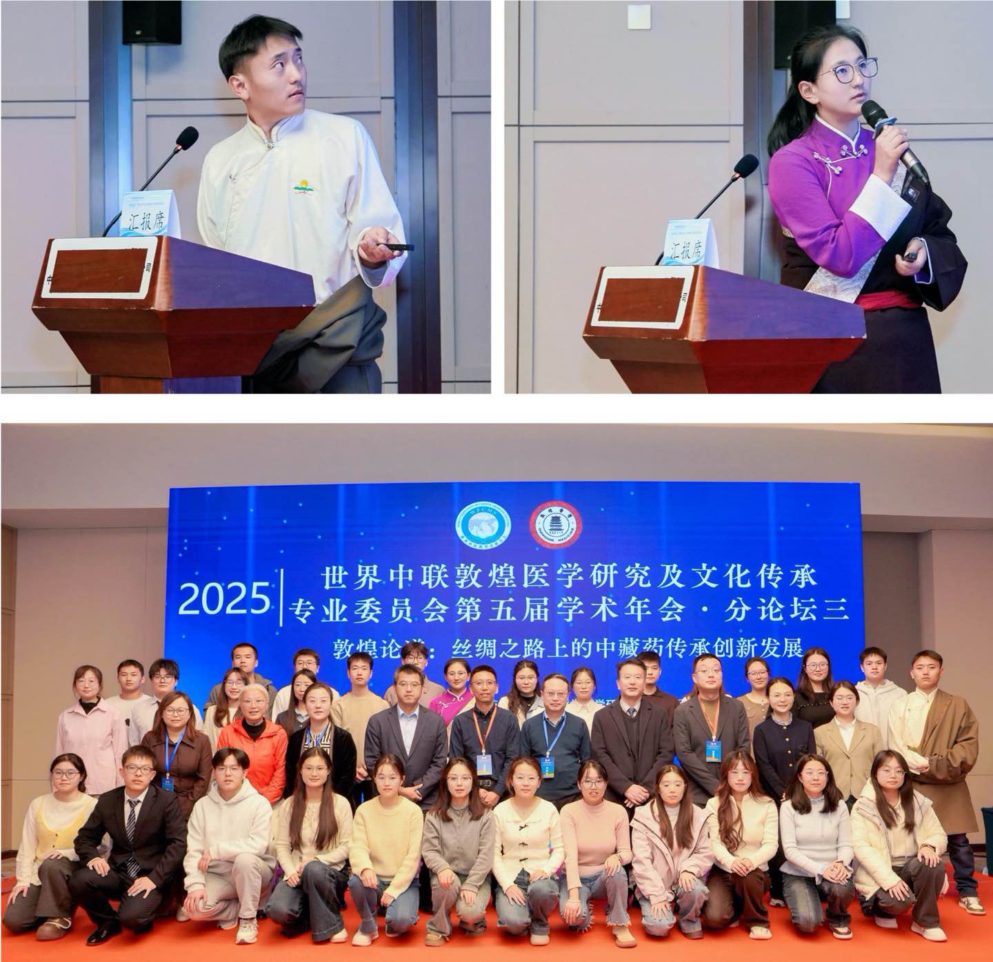 分会场还专设青衿学子论坛,以论文汇报、专家现场评分的形式开展学术比拼,共遴选12篇优秀学子投稿论文参与展示。公司学子表现突出,道吉仁欠同学的《敦煌吐蕃藏文医马文献整理与研究——以法藏、英藏敦煌藏医写本为中心》荣获二等奖,化华草同学的《基于半结构化访谈的敦煌藏医文献整理的现状研究》荣获三等奖,彰显了公司人才培养的扎实成效。